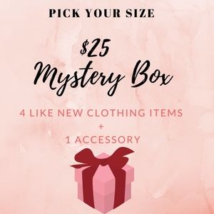 I have thousands of items to list!!! Get a deal now so I don't have to photograph/measure them! Pick Your Size! Receive 4 Like new in season clothing items and an accessory (like jewelry/purse/scarf/hair item). All items are modern styling, great brands and in like new condition. All items are items I would eventually list on Poshmark myself and in great condition to resell, so if you don't like something, simply reposh! Also try the reseller option! Same quality, random sizes and a full box!