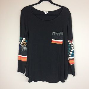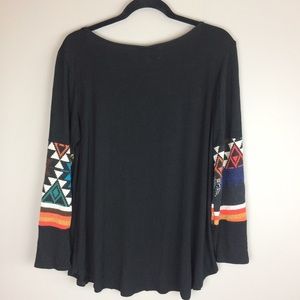 Color: Aztec multi color print lightweight knit panels on black
