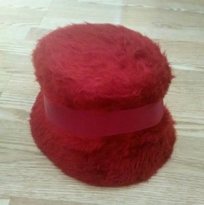 This vintage hat is beautiful and unique! Red faux fur with unique ribbon trim. In great vintage condition.
