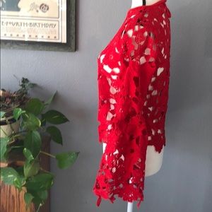 New! Lace Bell Sleeve Long Sleeve Blouse • Red •