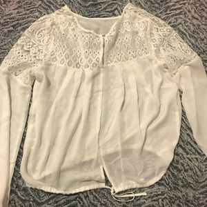 Super adorable cream colored blouse. Has a super cute lace design that goes across the top of the back.
