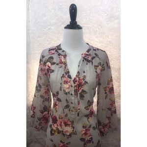 ❌SOLD❌ Princess Vera Wang Gray Sheer Blouse Floral