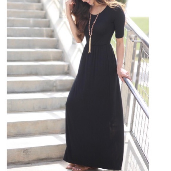 Black side pocket 3/4 sleeves maxi dress in a viscose jersey spandex knit Bust measurements laying flat on one side S 16 M 17 L 18 XL 20 length S 58 M 59 L 60 PLEASE Use the Bundle option you can purchase and it will give you the option to pick the size you want BUNDLE and save 10% ( no trades price is firm unless bundled)