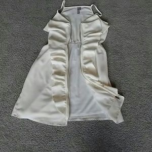 While party dress by Alya. Zipped and ruffled front closure. Spaghetti straps, lined skirt. Excellent condition.