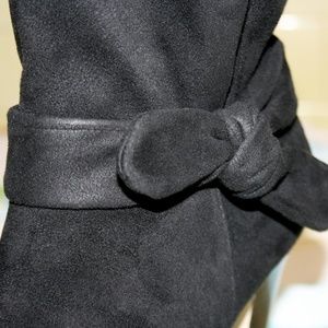 These heeled boots are at once cute, sophisticated and sexy! The bow detail give these a little extra femininity, and they also feature a round toe and stacked heel. The faux micro suede is extremely soft and the benefits besides being vegan is that the texture is completely even, and it's the perfect lovely matte black. The 3" tapered heel is perfect for a long work day - not too high and not too narrow! Brand new in original box!