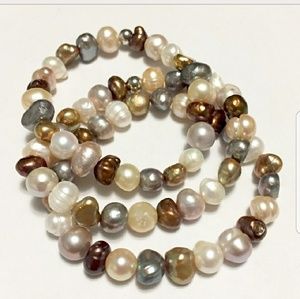 - White, peach, purple, gray, bronze and topaze freshwater pearls.