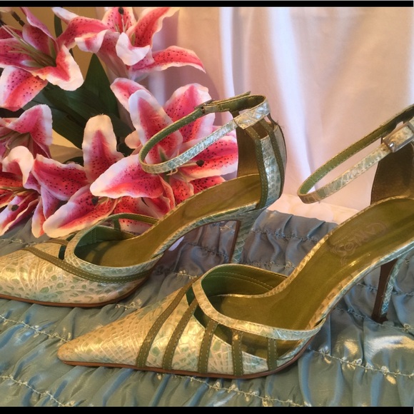 Pumps. Green ladies high heels shoes. Absolutely gorgeous Carlos Santana shoes. 3 inch heels. Simply beautiful. Leather upper. retro. 8M