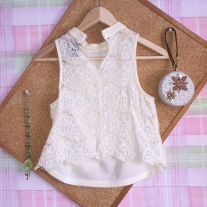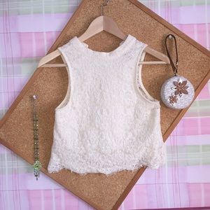 Cream colored lace crop top with elastic bands on back to button. Great condition, does not fit me