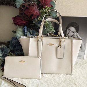 NWT Coach F11925 Crosby Carryall 21 in Crossgrain Leather -Chalk and Wallet F58053