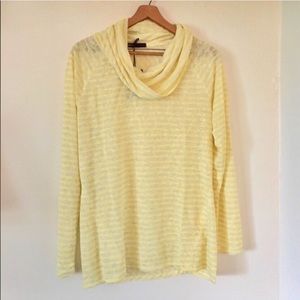 Gibson Pale Yellow Raglan Sleeve Cowl Neck Knit Top. NWT. Size Large. Color: Yellow and Cream. From Nordstrom. Rayon and Polyester Blend.