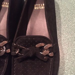 Stuart weitzman black suede flats loafer with silver embellishment . Size 6 1/2 new never worn .