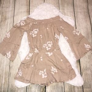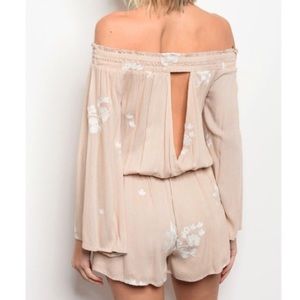 This beautiful embroidered romper features a back cut out and bell sleeves!