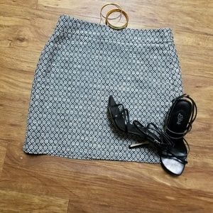 Ann Taylor Loft Print lined Mini Skirt approx 18" length waist 15 1/2" hips 20 " 40% cotton 38 polyester 22% rayon lining 100 % polyester