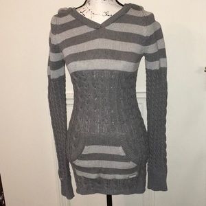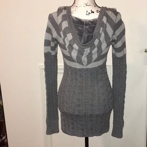 The original "Tokyo" brand Long Sleeve Sweater Dress. Hoodie pocket in front. Hood with fur inside. V-Neck.