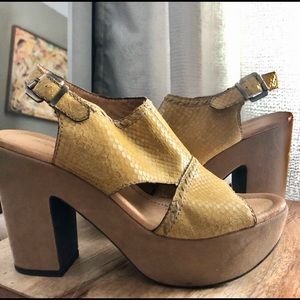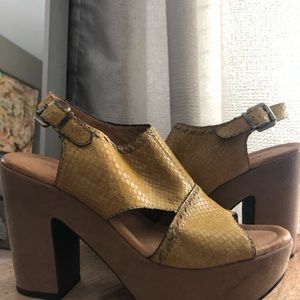 Platform with ankle strap. Snake embossed print. Worn twice.