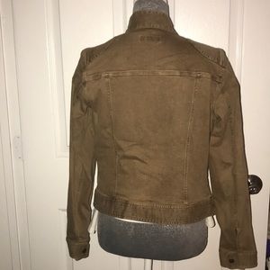 Lauren Jeans Company by Ralph Lauren Cotton denim-feel in brown/tan moto jacket with leather detail and gold button accents and zipper in excellent condition.