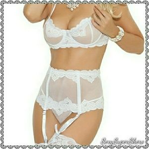 💣BLACK FRIDAY SALE!⚡🆕Bridal White Embroidery 4p Lingerie set Cincher