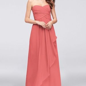 Strapless crinkle chiffon dress with cascade skirt