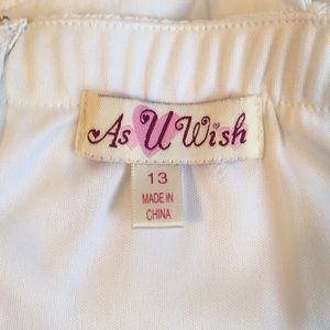 As U Wish White Sundress. SO cute, small polka dot detail with Roses by the hem. Side tie with side zipper. SO comfortable and breathable. I did see a little stain when inside on the lining. Only ever worn once!
