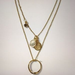 Banana Republic Two Tier Ring Charm Dainty Necklace $79.00 Style722530 Gold Plated Lobster Closure 38”end to end Condition New