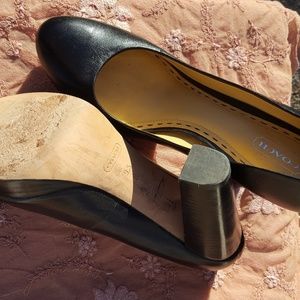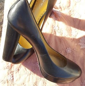 COACH Blk Leather Platform Chunky Heels Sz 9 1/2