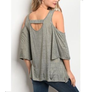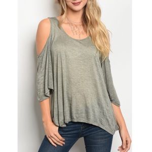 Soft flowing top in a rich hue of heathered sage. Cold shoulder with substantial coverage (hooray for those bra-wearing types), and flirty open detailing at the back. 100% rayon Length 25” S(Bust 38” Waist 40”) M(Bust 40” Waist 42”) L(Bust 42” Waist 44”) First two pics, Modeling size small (model is 5’5” and size 4/6). Second pics are stock photos. Color true to first two pics