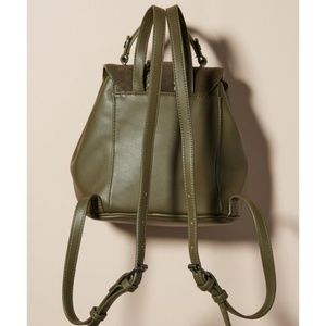 NWT Green Madeline Stitched Backpack. Trendy moss color with stitching detail on faux suede flap. Faux leather body and cotton lining. Two slip inner pockets and a magnetic snap closure.
