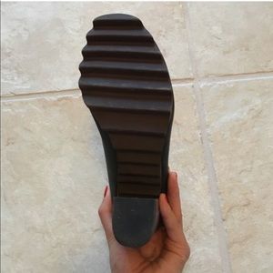 Black boots with a brown zig zag bottom! Worn less than a handful of times-no signs of wear other than the minor scuff in the back of the heel! Purchased from Urban Outfitters!