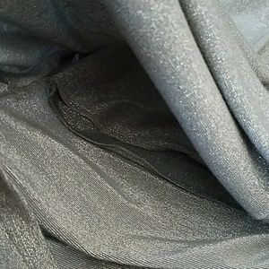 Flattering ruching on sleeve and right side of the shirt. It's not see-through at all but the shirt also has an additional cropped lining over the chest area (pictured) for smoother coverage.