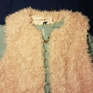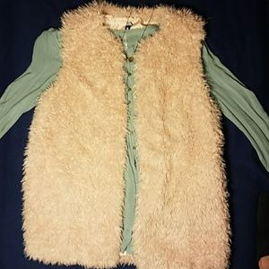 Peach faux fur vest. Has hooks down the middle. Size large, super soft with pockets.