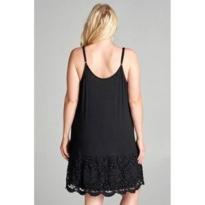 Solid jersey knit dress extender with a scalloped lace skirt and adjust spaghetti straps.