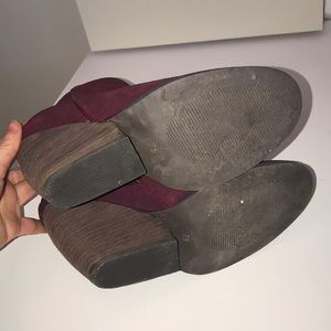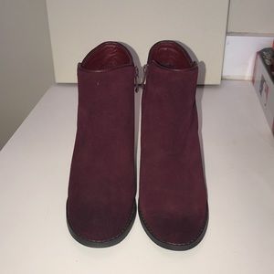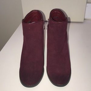 Volatile maroon suede wedge bootie