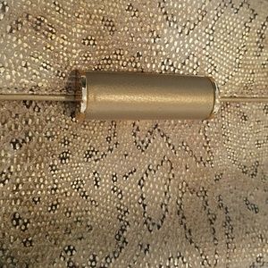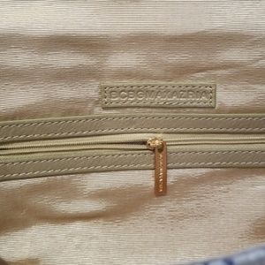 8" high. 12" wide at top. 2" thick. Zippered interior pocket. Two sewn, open interior pockets. gold hardware. NWOT. gifted. Never used.
