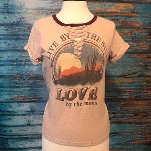 Live by the ☀️Love by the 🌙Rue 21 M Tan Lace Up Shirt