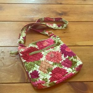 Vera Bradley Crossbody Bag- great pink and green print- EUC- all zippers work- no pen marks or stains