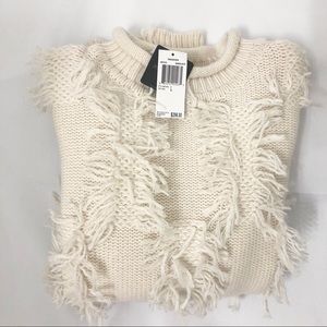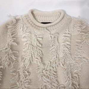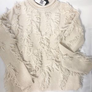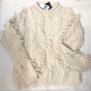 This beautiful Magaschoni sweater is 57% Cashmere, 43% Wool and is super soft. This is from their FW 2017 collection, and it is new with tags, retailing for $298. It is ivory with textured shag details on the front and sleeves, back is simply woven. I love the oversized boyfriend-type fit! This would pair great with anything from black coated skinnies/leather leggings to a silk slip dress.