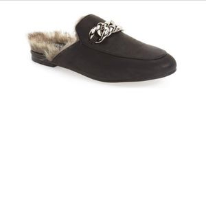 JEFFREY CAMPBELL Womens Apfel Sz 6 Black Leather Fur Backless Slide Mule