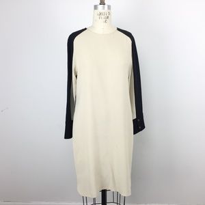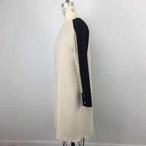 Derek Lam Womens Dress Sz US 10 Shift Black White Silk Long Slv Made in Italy T7