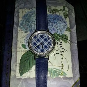 NEW, Just gorgeous, Authentic Aeropostale watch with beautiful rhinestones all in tact around the dial. Its A cute blue and white pattern on the face of the watch, with a beautiful dark blue colored strap, length 9in.that is adjustable. It Does NOT need batteries!!