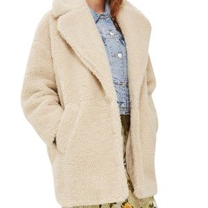TopShop petite borg Cocoon Coat Jacket cream color