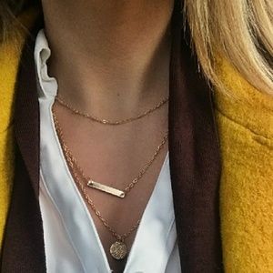 Brand New Triple Layered Gold Coin Bar Necklace