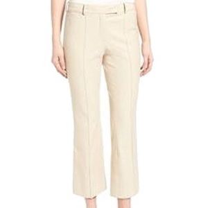 Cleanly tailored front crease accentuate the fluid silhouette of crop trousers. The classic silhouette elevates this wardrobe staple, embodying style icon Olivia Palermo's classic-meets-high-fashion design aesthetic. Super cute on! Unfortunately, being5'10 and all leg, they hit me in a weird place! Worn twice. All items come from a clean, smoke free home.