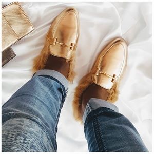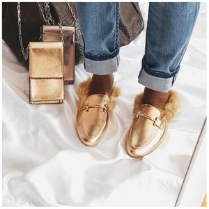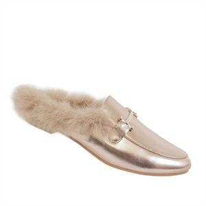 Rose Gold Faux Fur Trimmed Mule