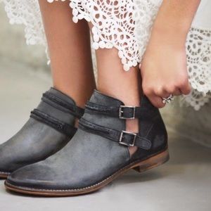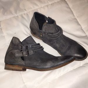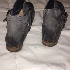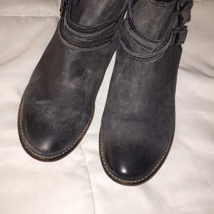 Excellent condition- worn once. No wearing besides very slight on soles! Size 41- 10.5. Grey distressed smooth leather- double buckles around ankle. Super cool Booties- just didn’t get worn much! Reasonable offers only please! Thanks! z#0245