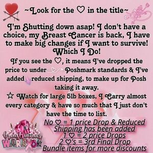 @hailiesdaddy Hun I don't get the shipping money, Posh gets that money, when I offer reduced or free shipping it comes off my sale price. Plus they get 20%, so I figured it out and after their fess me paying the shipping (which is $6.50, I can't change that it's the $ posh charges) and the the giving you almost half off of the price I would get $22! I paid more then that at whole sale price. I like to help people so if you are willing to pay $35 plus the shipping I can do that.