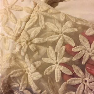 Beautifully embroidered white fabric with flowers sewn together to give a great fit. Make looking beautiful easy with this strapless dress!