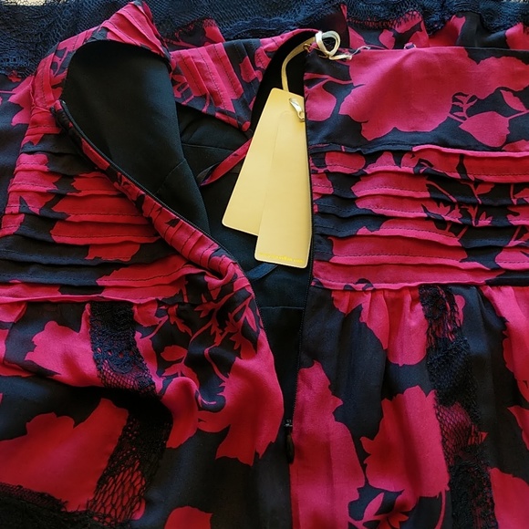 Beautiful new with tags pink tuck slip dress pink with a dark blue fully lined lace on the bottom. 100% silk. Lining is 97% polyester and 3% spandex.