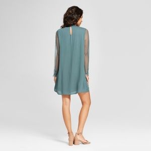 Long-sleeve shift dress with sheer yoke and sleeves ~