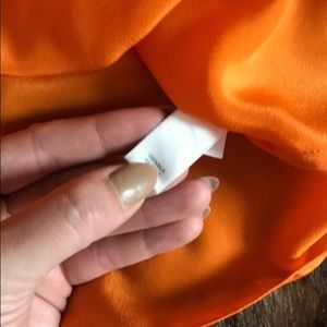 This is a gorgeous pure silk top, has been worn several times two tiny dots not visible when wearing are the only sign of wear - visible in pics. The color is a flattering warm orange and the cut and detailing is clearly high end. From the Trina Turk collection, rare to find in such great condition! Sadly it’s a reposh for me due to fit, but hope someone else can enjoy this beautiful top!