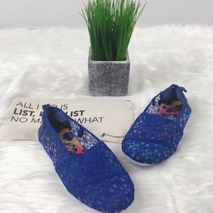 Blue mesh lace design slip on shoes.